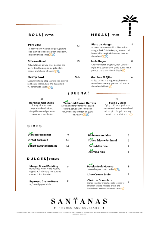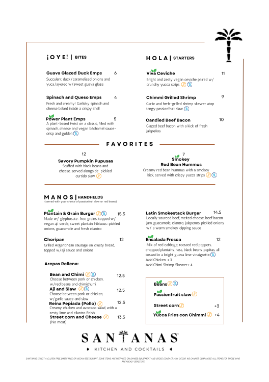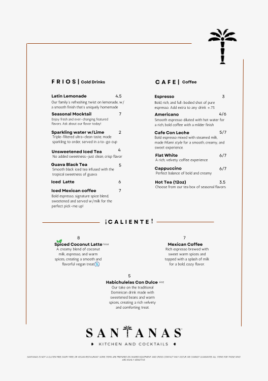 Santana's Kitchen and Cocktails Menu (Update 2025)