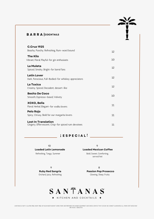 Introducing the Menu at Santana's Kitchen and Cocktails